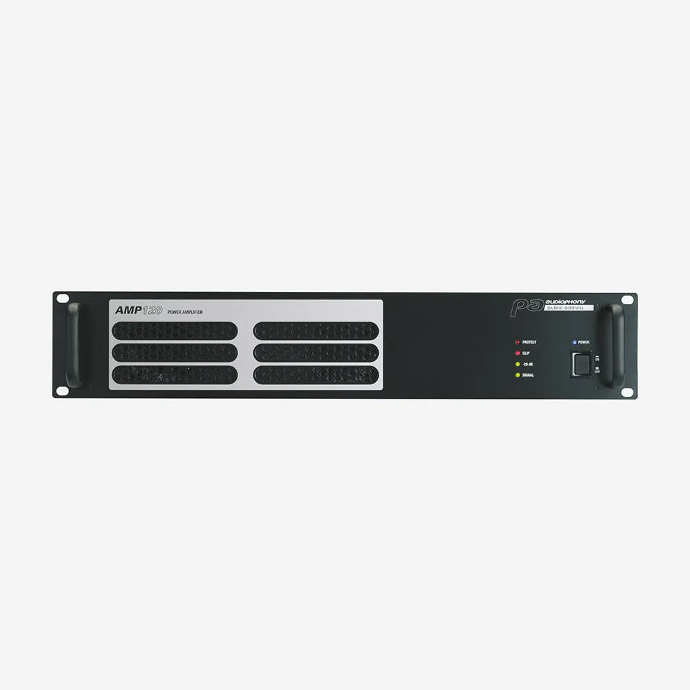 Le Audiophony AMP120 est un amplificateur Public Address conçu pour les installations fixes nécessitant une diffusion sonore fiable. Il délivre une puissance de 120 W et fonctionne en 4 Ohms, 70 V ou 100 V afin de s’adapter aux différents types d’installations de sonorisation. Son format rack 19 pouces 2U facilite son intégration dans les baies techniques professionnelles.